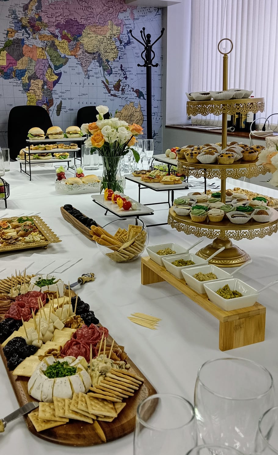 Disfruta de un cóctel buffet completo y elegante, ideal para matrimonios, cumpleaños y celebraciones especiales. Nos encargamos del montaje y la decoración, creando un ambiente acogedor y con estilo, mientras tus invitados disfrutan de una variedad deliciosa de bocados preparados con cariño. Tú solo relájate y vive la fiesta, que nosotros cuidamos todo hasta el último detalle.